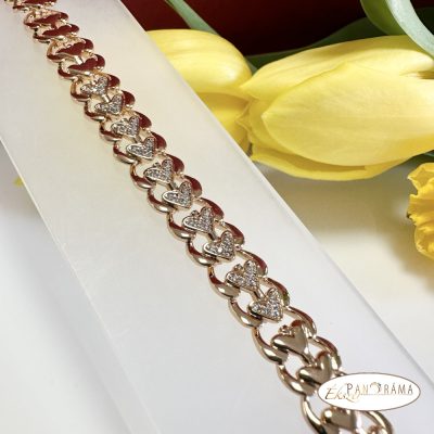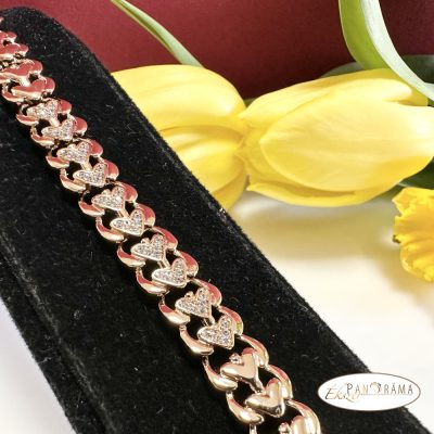 18K Gold Filled karkötő szív alakú mintasorral, apró kristályokkal a közép részen.