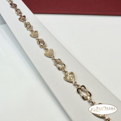 18K Gold Filled antiallergén, arany színű karkötő szívecskékkel.