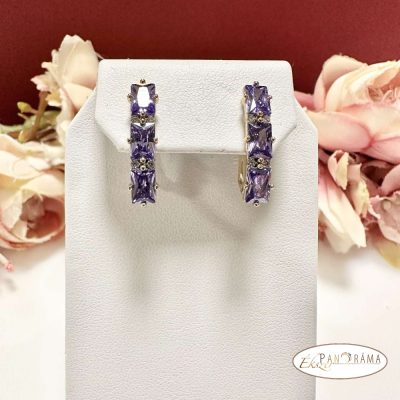 18K Gold Filled, antiallergén, kristályos fülbevaló - Crystine Violet