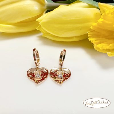 18K Gold Filled anti-allergén, nikkel és ólom mentes arany színű lógós szív fülbevaló.