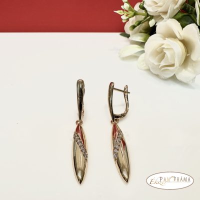 18K Gold Filled anti-allergén, arany színű, lógós fülbevaló kristály díszítéssel.