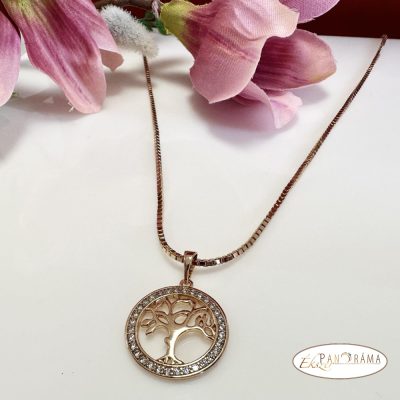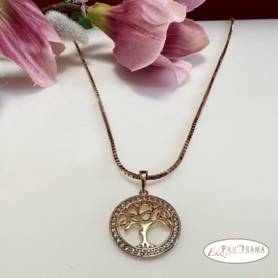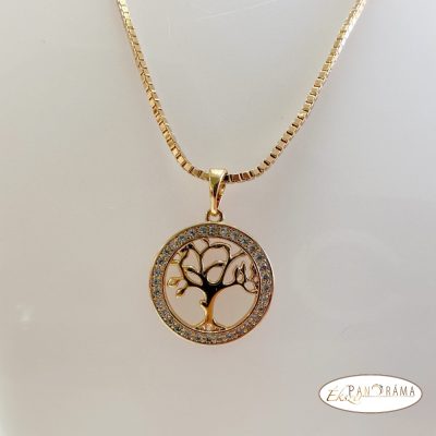 • 18K Gold filled, antiallergén medálos nyaklánc kristállyal díszítve - Életfa