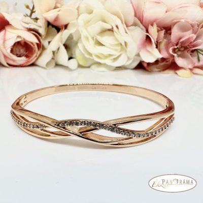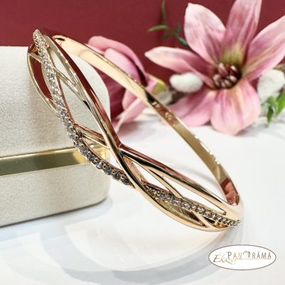 18K Gold Filled anti- allergén nyitható, arany színű karperec kristályokkal díszítve.