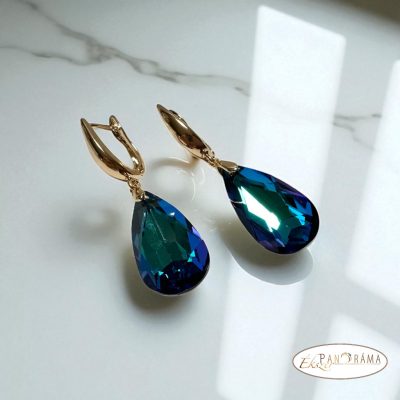 18K Gold Filled ,Eredeti kristályos fülbevaló - CANDY Blue BBL