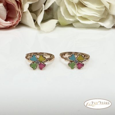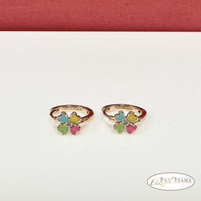 18K Gold Filled anti-allergén, nikkel és ólom mentes arany színű fülbevaló többszínű virág formájú, középen kristállyal díszítve.