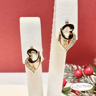 18K Gold Filled anti-allergén, nikkel és ólom mentes arany színű fülbevaló szívecskés, kristályos díszítéssel.
