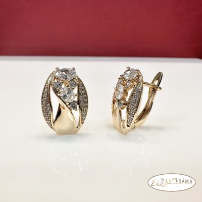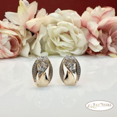 Különleges és elegáns formájú, kristályokkal díszített fülbevaló.