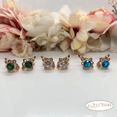 18k Gold Filled anti-allergén, nikkel és ólom mentes fülbevaló oldalt apró kristályokkal, középen egy nagyobb zöld kristállyal díszítve.