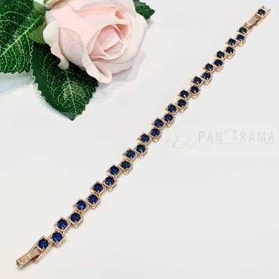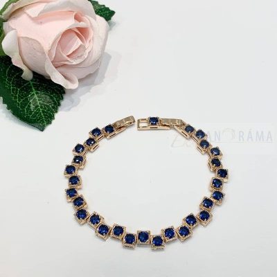 18 K Gold Filled anti allergén karkötő sötétkék kristályokkal díszítve. Nagyon szép kiegészítője lehet öltözékünknek.