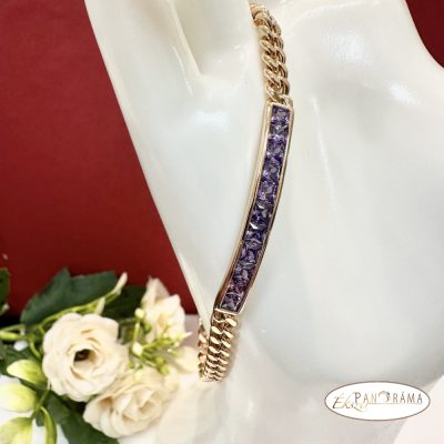 18K Gold Filled, antiallergén arany színű karkötő, kristályokkal díszítve.