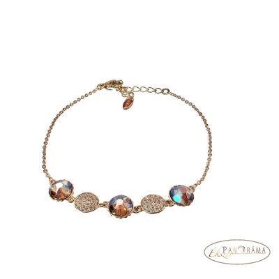 18K Gold Filled, antiallergén arany színű karkötő, eredeti kristályokkal díszítve. A kristályok színjátszók!