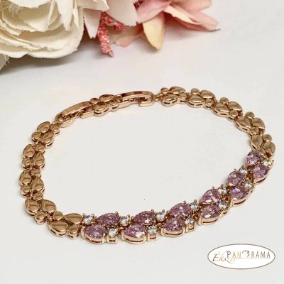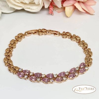 18K Gold Filled arany színű Karkötő világos rózsaszín kristályokkal díszítve.