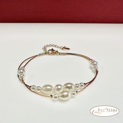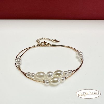 18K Gold Filled, kétsoros antiallergén arany színű karkötő gyöngyökkel díszítve.