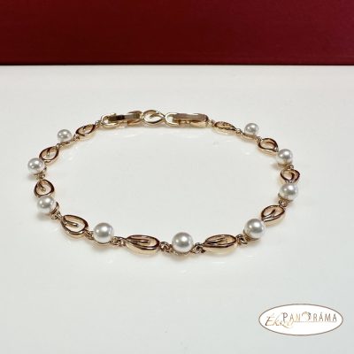 18K Gold Filled antiallergén arany színű karkötő gyöngyökkel díszítve.