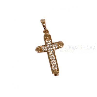 18K Gold Filled anti-allergén, arany színű kereszt medál kristályokkal díszítve