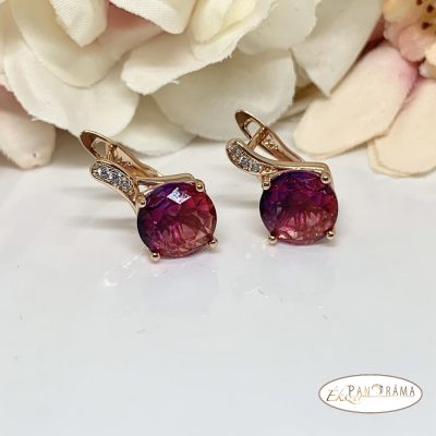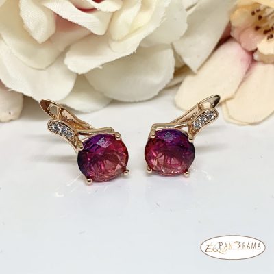 •  18k Gold Filled kristályos fülbevaló - Fuxia