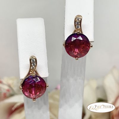 18k Gold Filled kristályos fülbevaló - Fuxia