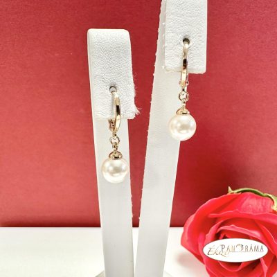 18K Gold Filled anti-allergén, nikkel és ólom mentes arany színű, lógós gyöngy fülbevaló.