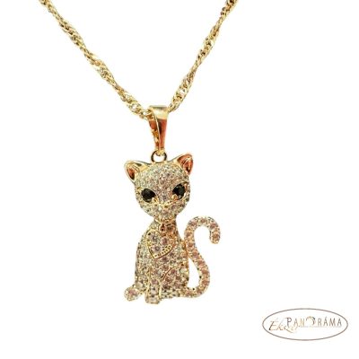 18K Gold filled arany színű medálos nyaklánc, kristályos cica díszítéssel.