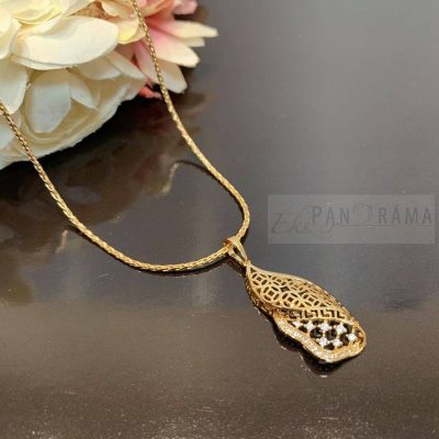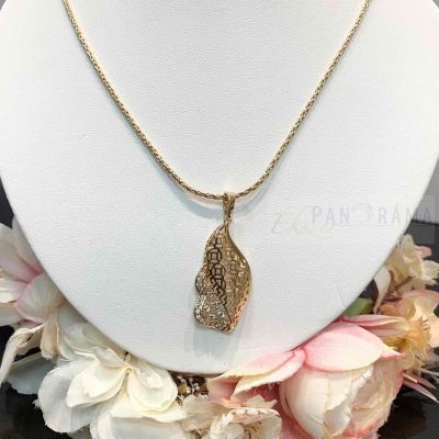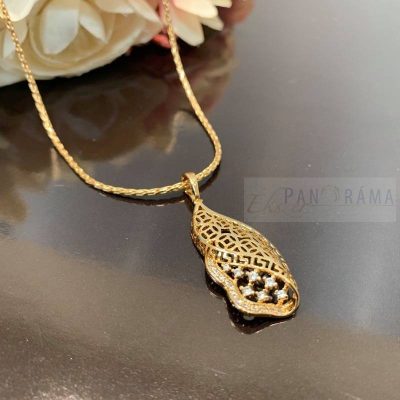 18K Gold filled arany színű nyaklánc különleges mintájú és kidolgozású, kővel díszített medállal. Nem allergizál, nikkel mentes! A vékony lánc mintázata változhat.