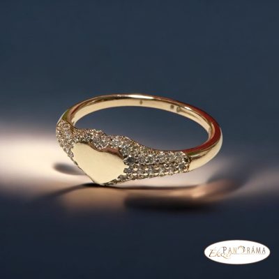 18K Gold Filled női gyűrű, fehér kristályokkal díszített, közepén szívvel