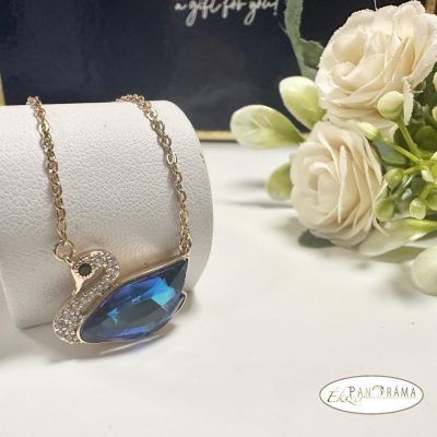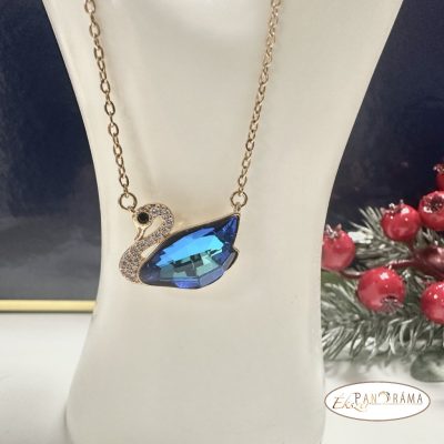 18K Gold Filled antiallergén, nikkelmentes arany színű nyaklánc eredeti kristályokkal díszített hattyú medállal.