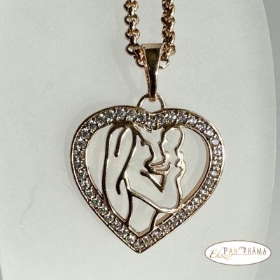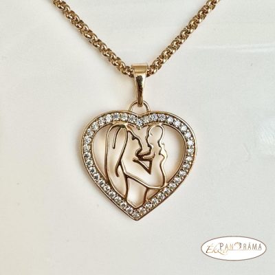 A kristályos szív medál egy anyát a gyermekével ölel körül.