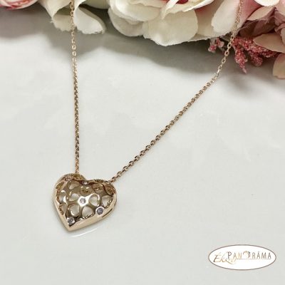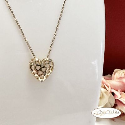 18K Gold Filled antiallergén, nikkelmentes nyaklánc, szív alakú medállal, benne elszórva kristályos díszítés.