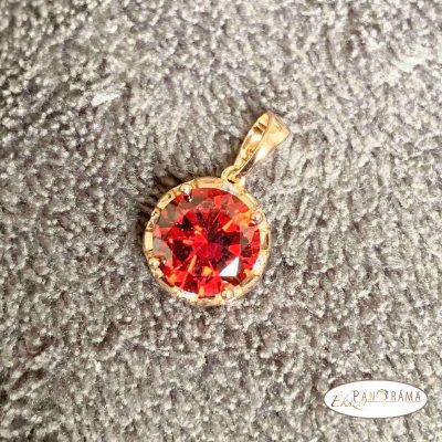 Arany színű, mutatós ékszer, csodásan csillogó piros kristályos medállal.