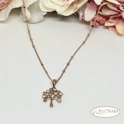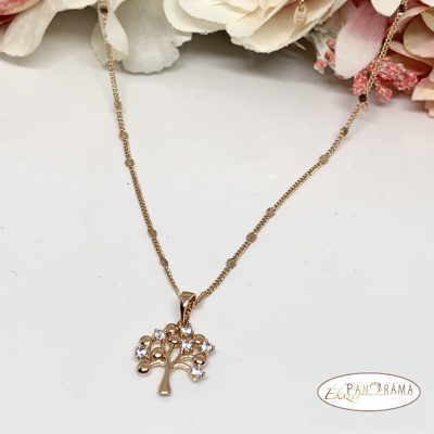 18K Gold Filled antiallergén, nikkelmentes nyaklánc,kistályokkal díszített életfa medállal