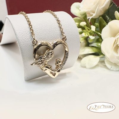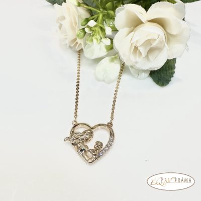 A medál szív alakú, melyben egy anya látható a gyermekével. Mutatós ékszer, ajándéknak is kitűnő választás!