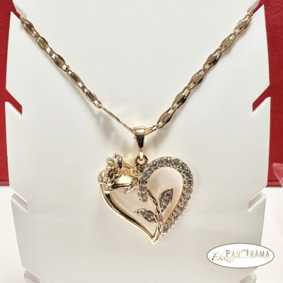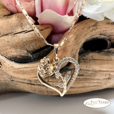 18K Gold filled arany színű nyaklánc gyönyörű kristályos szív medál egy rószaszállal