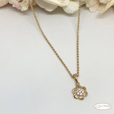 18K Gold Filled antiallergén, nikkelmentes arany színű nyaklánc kristályos kis virág medállal