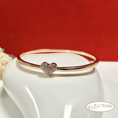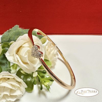 18K Gold Filled anti- allergén nyitható, arany színű karperec, elől szív alakban kristályokkal díszítve.