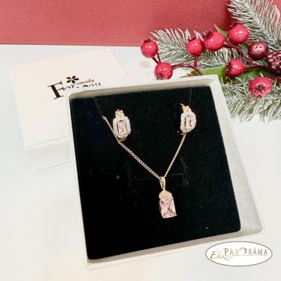 18K Gold Filled anti-allergén szett, medálos nyaklánccal és fülbevalóval díszdobozban.