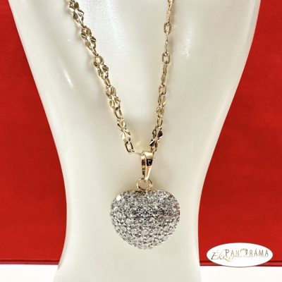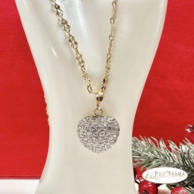 18K Gold Filled arany színű, szív medálos nyaklánc, csupa kristályos díszítéssel.