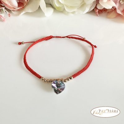 18K Gold Filled piros színű zsinóros karkötő, eredeti szív kristályos díszítéssel