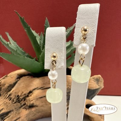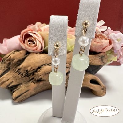 18K arany színű nikkel mentes fülbevaló, tekla és Jade gyöngy díszítéssel.
