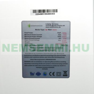 TÜV-Saar által jóváhagyott minőségi modul, A-osztályú monokristályos napelem 18V 150W.