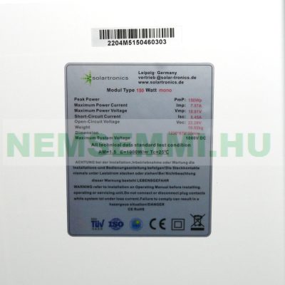 TÜV-Saar által jóváhagyott minőségi modul, A-osztályú monokristályos napelem 18V 150W.