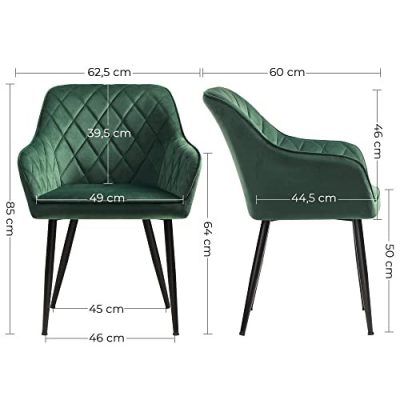 2 db-os Étkezőszék szett kartámasszal, bársony kárpittal, zöld2 db-os Étkezőszék szett kartámasszal, bársony kárpittal, zöld