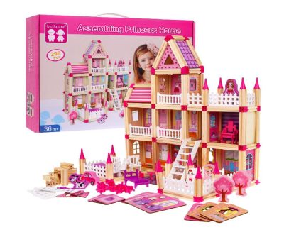• 268 db-os mega fa építőkocka készlet - rózsaszín kastély