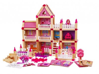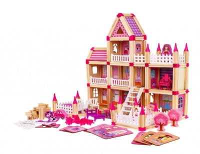 • 268 db-os mega fa építőkocka készlet - rózsaszín kastély