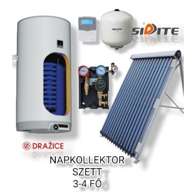 3-4 fő részére napkollektor rendszer: 15 vákuumcsöves napkollektor + 160 literes 1 hőcserélős Drazice bojler + ECO szivattyú állomás + vezérlés + tágulási tartály