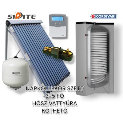 • 3-5 fő részére hőszivattyúra köthető napkollektor rendszer: 20 vákuumcsöves kollektor + 200 literes 1 extra nagy hőcserélős álló bojler + ECO szivattyú állomás + vezérlés + tágulási tartály