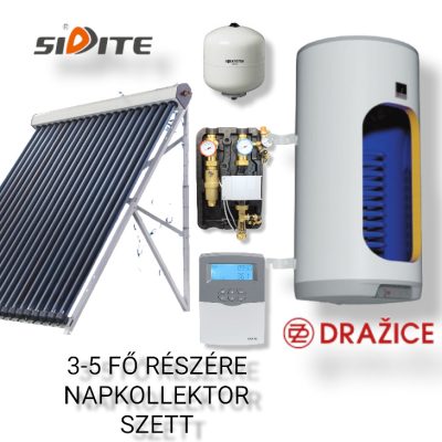 3-5 fő részére napkollektor rendszer: 20 vákuumcsöves napkollektor + 200 literes 1 hőcserélős Drazice fali bojler + szivattyú állomás + vezérlés + tágulási tartály