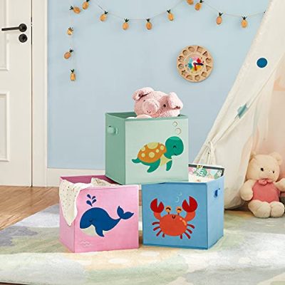 • Amit kapsz: 3 tárolódobozból álló készlet óceáni témájú dizájnnal és 2 oldalfogantyúval, amelyek több tárolási megoldást kínálnak, miközben gyermekeidet arra csábítják, hogy saját kezűleg rendezzék el a játékokat.
