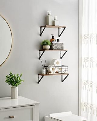 3 fali polc készlet, lebegő polcok, csecsebecsékhez, fotókeretekhez, fűszeres üvegekhez, piperecikkekhez, nappaliban, hálószobában, konyhában, fürdőszobában, rusztikus barna és fekete: