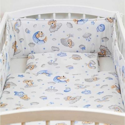 3 részes babaágynemű garnitúra egyenes fejvédővel - felhős maci