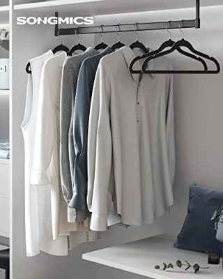 • [Aprólékos védelem] Ezeken a bársony akasztókon a ruhái mindig jó állapotban maradnak, így a napot élesben kezdheti; a vállakon lévő barázdák segítenek a pántos ruhák és szoknyák rendszerezésében.